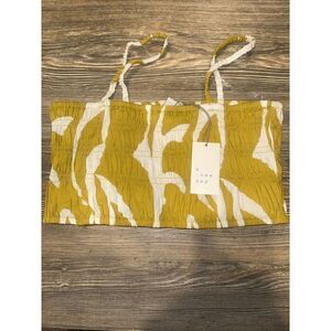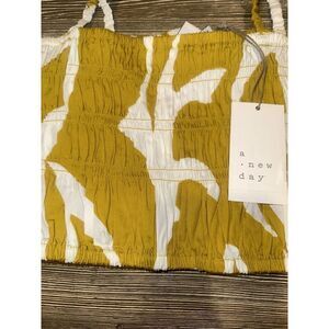 Women's Slim Fit Smocked Tiny Top - A New Day Yellow/Cream. Size Large. NWT. 2
