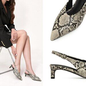 Slingbacks: Comfort and style, these pumps feature a low-heel design for easy wear, a trendy sling-back design, and a modern pointed-toe. The v-cut upper adds fashion flavor, making them the ideal choice for casual and formal occasions.