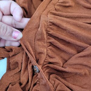 Brand New, With Out Tag, Women's Slinky Knit Ruched Front Button Down Crop Top Brown Size Medium