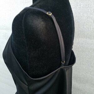 This black slip dress is a must-have for any city-themed occasion. It features strappy sleeves and accents, knee-length dress length, and is made of polyester material. The dress is size XL and has an unknown brand, but detailed measurements are available. It's perfect for any woman who wants a chic and stylish look without sacrificing comfort.