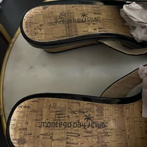 Women’s Slip Op Sandals ‘ Montego Bay Club’ Black Cork Wedge 9.5