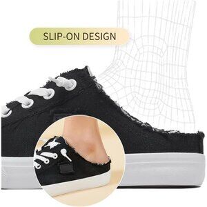 Comfortable Lining: The moisture absorbing and breathable microfiber lining of slip on sneakers women keeps your feet from feeling stuffy, and the soft insole feels like stepping on a cloud. The interior space of mules for women is also ample. It does not squeeze or press the instep, and the toes can freely extend inside the shoes.