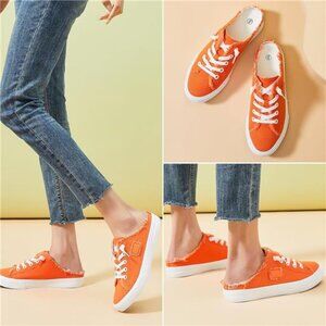 Comfortable Lining: The moisture absorbing and breathable microfiber lining of slip on sneakers women keeps your feet from feeling stuffy, and the soft insole feels like stepping on a cloud. The interior space of mules for women is also ample. It does not squeeze or press the instep, and the toes can freely extend inside the shoes.