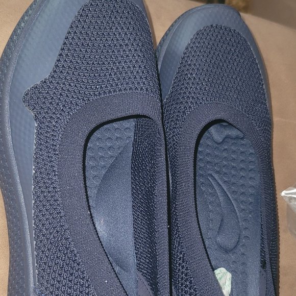 Lightweight, sporty and comfortable with a cushioned insole made of memory foam. Each shoe weighs only 4.9 ounces and is slip-resistant. Color is navy blue, as pictured. All-day comfort! A couple different sizes available!