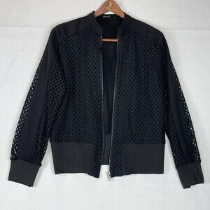 Womens Small Black Mesh Bomber Jacket Full Zip Long Sleeve. Shipping ( in 1 business day.)