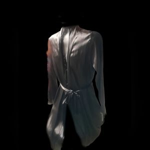 Size small, but it looks big to me. Only wore a couple of times. 100% Polyester, black.