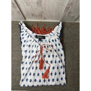 Womens Small Bohemian Style Short Sleeve Tunic Top With Tassels & Fringe Hem
