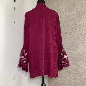 Women's Small Coco + Jaimeson Burgundy Cardigan w/ Floral Bell Sleeves