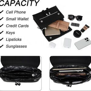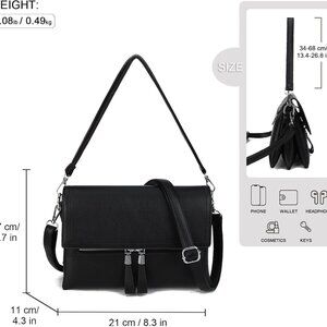 Features: Chic faux leather finish with a lightweight design at just 1.08 pounds. Features double zipper compartments on the front and three inside pockets, giving you plenty of space to organize your phone, wallet, keys, and cosmetics. Adjustable shoulder strap from 13.4 to 26.8 inches makes it easy to switch between shoulder and crossbody styles.