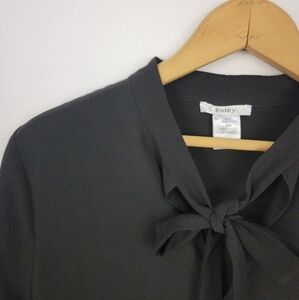 Ties at neck, but can be left untied