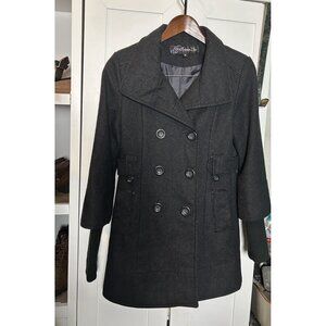 Women's Small Freedom 2 Be Mid-Length Solid Charcoal Gray Pocket Pea Coat