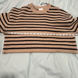 Women’s Small H&M Cream & Black Horizontal Striped Crop Top Crew Neck Sweater. Dropped shoulders. Excellent used condition. No rips, stains or defects. Please see pictures for measurements.