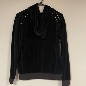 Women's Small Juicy Couture Black Velour Studded Pullover Hoodie