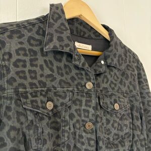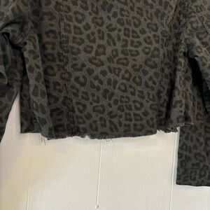 Altar’d State Cropped Leopard Animal Print Denim/Jean Jacket Black/Gray Size Women's Small