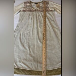 Women’s Small Linen Tunic Handmade In Bangladesh. Natural Color w/ Embroidery