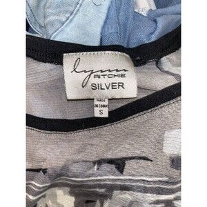 The product is a women's small silver blouse by Lynn Richie. Perfect for casual occasions in the summer, fall, and spring seasons.