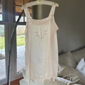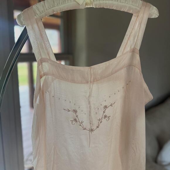 Women's Small Night Gown Cream Silk Antique Chemise Embroidered Vintage 30s