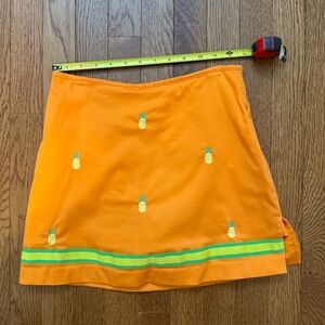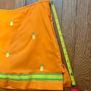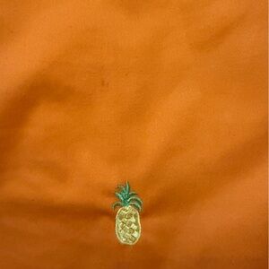 Bright orange fabric with Bamboo Traders label. Stylish and bold. Super cute 90s/Y2K vide 2 piece set. It includes a halter top and skort. Embroidered pineapples. Bottoms are a 4 petite and top is petite small. One tiny spot/stain picture on front. Very small and not noticeable. Please see measurements
