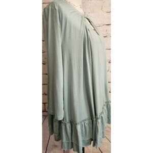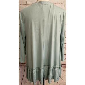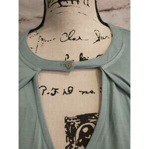 Womens Small Ruffle Aqua Blue Ruffle 3/4 Sleeve Casual Tunic Top Cottagecore