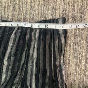 Womens Small Stripe Pleated Maxi Skirt Black Silver Lined Elastic Waist NWOT