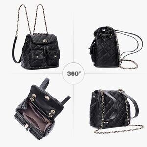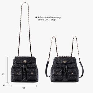 Features: Crafted from soft vegan leather that holds its shape beautifully, with a pretty quilted design and padded feel for all-day comfort. The gold-tone hardware adds a stylish touch, and a fabric lining keeps your essentials protected. This mini backpack easily transforms into a shoulder bag or crossbody with adjustable chain straps, making it perfect for any occasion. It comfortably fits your phone, wallet, keys, makeup, water bottle, and even a small tablet — with multiple compartments to keep you organized. Easy to wipe clean, it’s a perfect everyday/out-on-the-town bag.