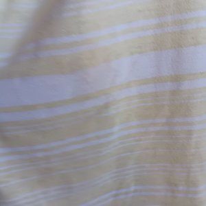 This lightweight top features a relaxed fit with a square neckline and subtle yellow and white stripes, offering effortless casual elegance.