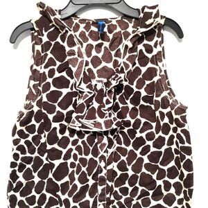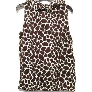 Women’s Small White Leopard Print Sleeveless High Neck Blouse Silk-Like Top