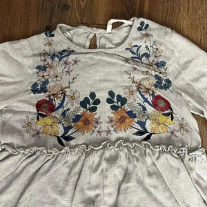 This beautiful gray blouse from Zara is perfect for any bohemian-themed outfit. The floral pattern and round neckline give it a feminine touch, while the pullover closure and balloon sleeves make it comfortable to wear. It's a regular fit, size small, and suitable for any casual or travel occasion. The blouse is made for all seasons, making it a versatile addition to your wardrobe. Get ready to turn heads with this stylish babydoll top!