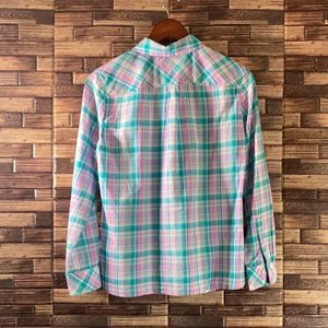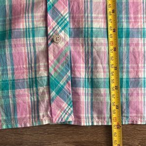 Womens Small Petite Talbots Plaid Button Down Shirt Pink & Green Plaid