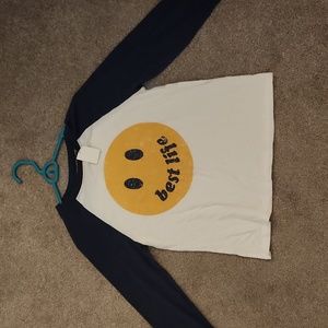 This raglan round-neck tee showcases a yellow smiley face and the text "Best Life" printed in place of the smile, giving your ensemble an adorable touch.