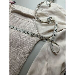 Women's Smocked Long Sleeve Squareneck Ruched Back Mini Dress Tan Large