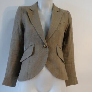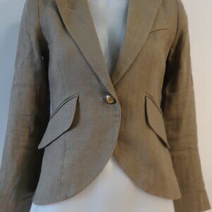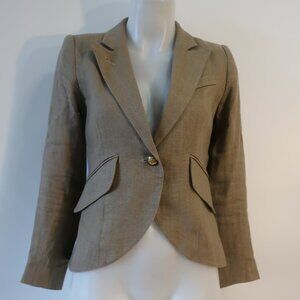 Womens Smythe 100% Linen Dark Khaki One Button Duchess Blazer 4