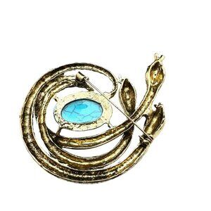 Womens Snake Brooch Gold Tone Faux Blue Turquoise Statement Pin Vintage Style