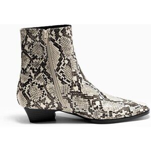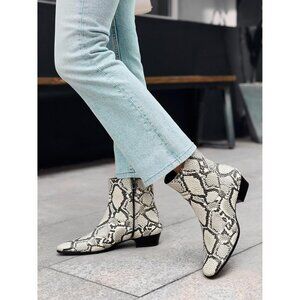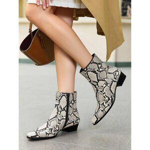 ⚡Women's Snake Print Booties Low Heel Ankle Boots Square Pointed Toe Chunky Heel