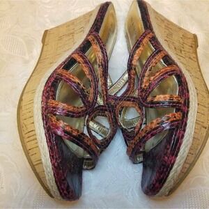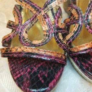 Womens Snake Slides Sandals Multicolor Snake Print Shoes Heel Cork Red Wedge 10