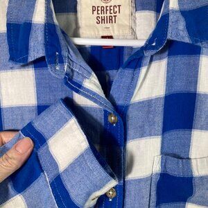 Womens So Perfect Shirt Buffalo Plaid Flannel Shirt Blue White Cotton L fits lik
