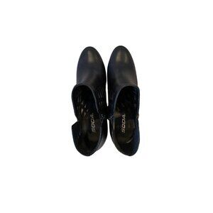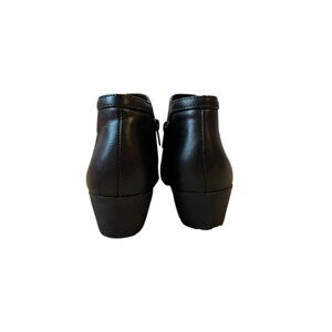 Black booties with heel and cutouts. Pre-owned with minimal signs of wear. Ships from clean, smoke-free environment.