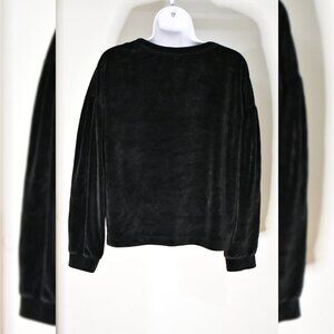 This black sweater is almost furry, it's so soft! There is no material tag.