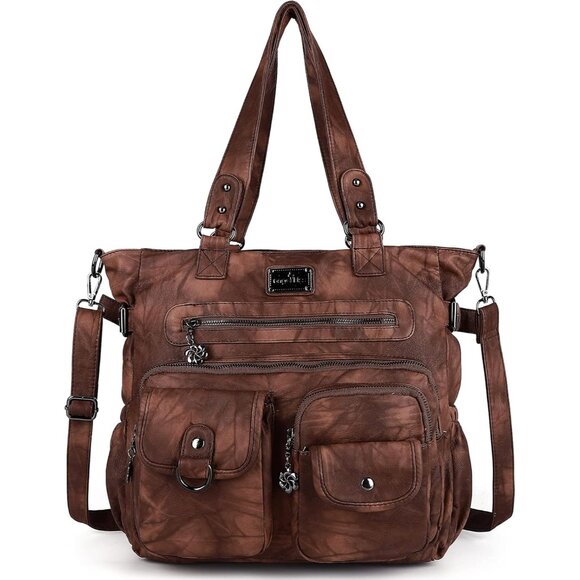 Women’s Soft Leather Hobo Satchel Crossbody Tote Bag with Multiple Pockets