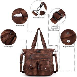 Features: Made from high-quality washed vegan leather, this bag is all about softness, lightness, and durability. It comfortably fits your daily essentials like an iPad, phone, wallet, and cosmetics. The spacious interior includes multiple pockets — four front zippers, a handy side pocket, two inside slots, an inner zipper pocket, and a back anti-theft pocket — keeping everything organized and easily accessible. The adjustable shoulder strap and fixed handle make it versatile for crossbody, shoulder, or handbag style.