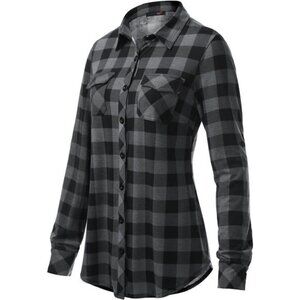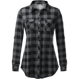 Womens Soft Stretchy Knit Plaid Shirts - Roll Up Long Sleeve Collared Blouses
