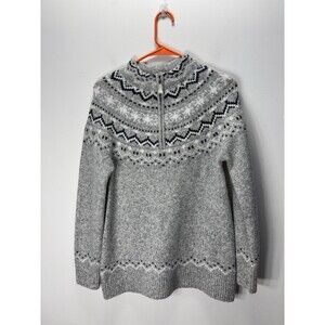 Women's Soft Surroundings 1/2 Zip Sascha Fair Isle Grey PulloverSweater Wool XS