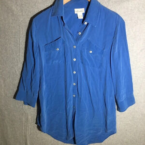 Womens Soft Surroundings Blouse Button Up Top Silk Office Work Career Wear