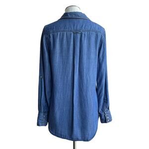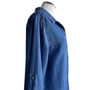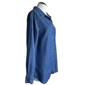 Women's Soft Surroundings Blue Long Sleeve Button Down Denim Top Shirt sz Medium