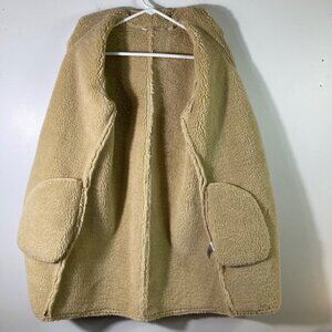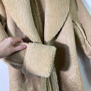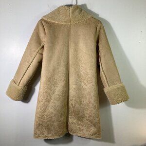 Womens Soft Surroundings Faux Suede Sherpa Coat Floral Burnout Tan PXS