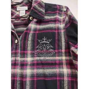 Women's Soft Surroundings Purple Black Plaid Button Shirt Sz Small Petite