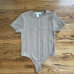 Women's Soho Lady Black Tan Bodysuit Ribbed Short Sleeve Shirt Tops S/M - Lot 2