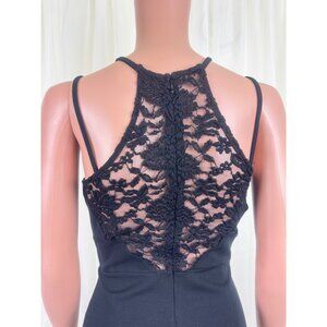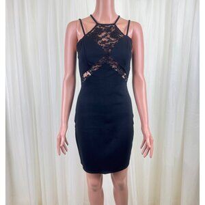 Women's Solemio Lace Accent Racerback Bodycon Mini Dress Black Size Medium