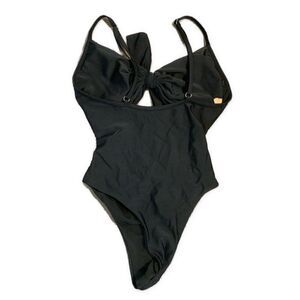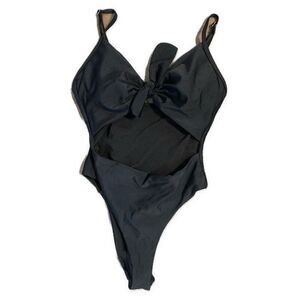Womens Solid Black Bow Padded Open Stomach Belly Bathing suit One Piece Small