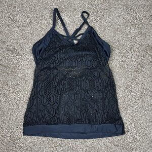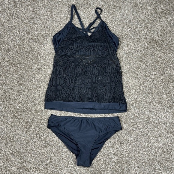 Women's Solid Black Bralette Tankini with Bikini Bottoms Size Medium